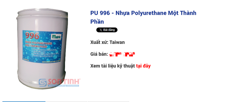 PolyUrethane 996 được cấp trong thùng 5 gallon.