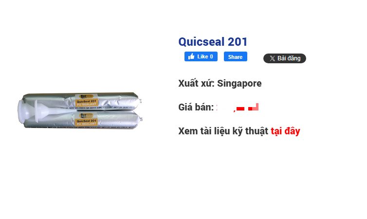 QUICSEAL 201 có độ đàn hồi thấp, không võng, và là keo gốc polyurethane, có thể phản ứng lại độ ẩm của không khí và tạo thành một lớp cao su linh hoạt chèn lấp khe.